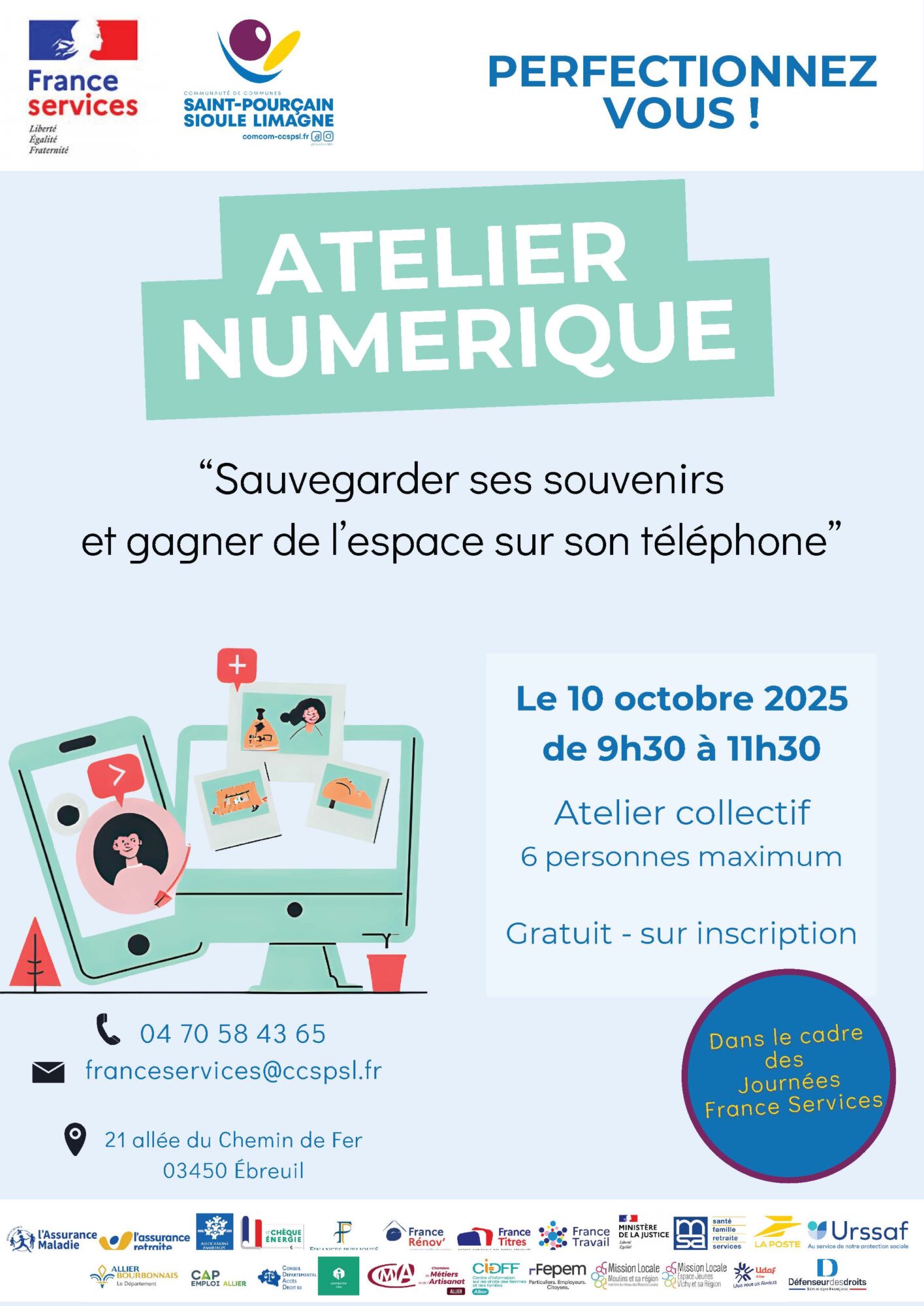 📞 Infos / inscriptions : 04 70 58 43 65 • 06 12 68 90 34 • franceservices@ccspsl.fr