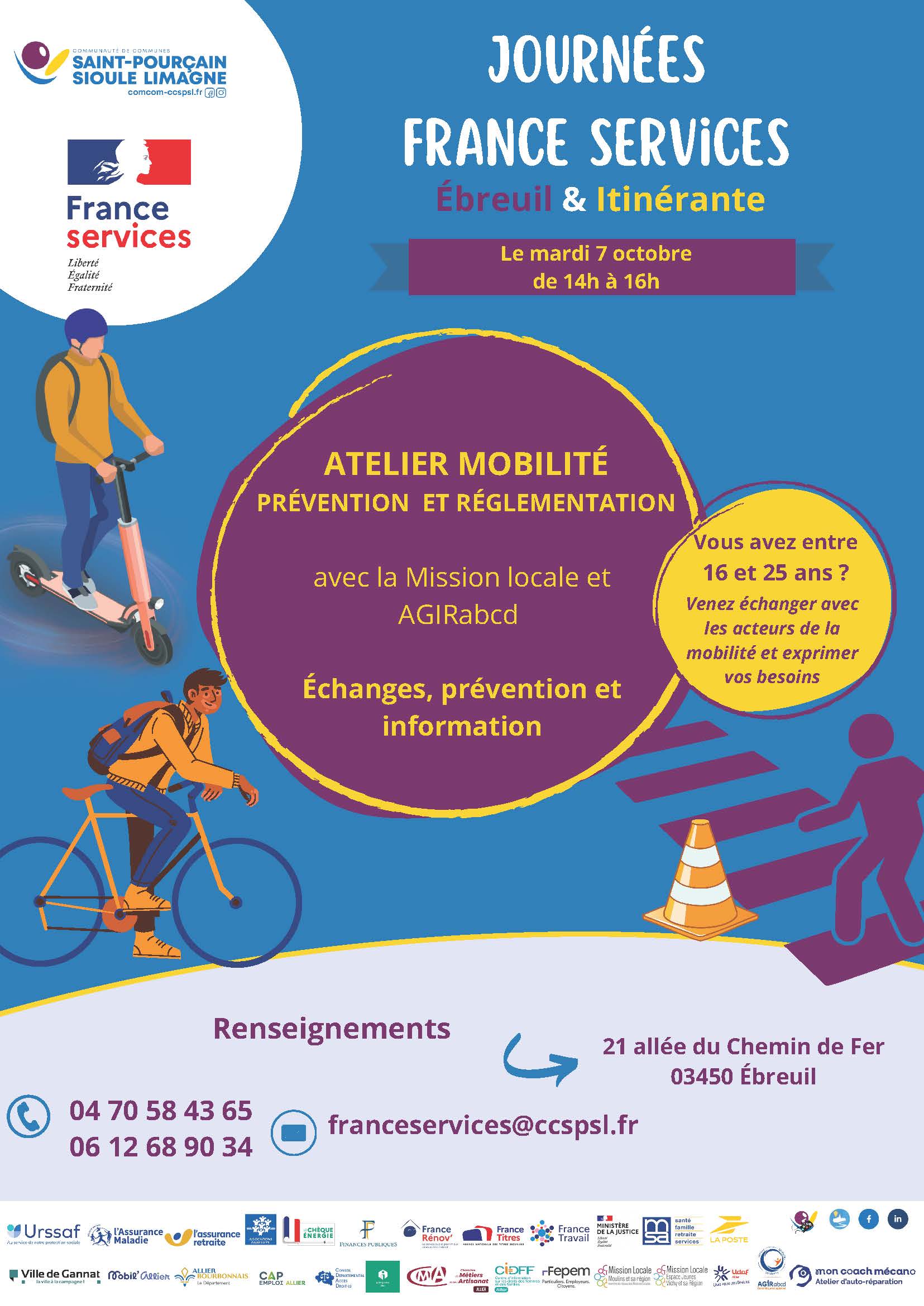 📍 Lieu principal : France Services Ébreuil – 21 allée du Chemin de Fer, 03450 Ébreuil